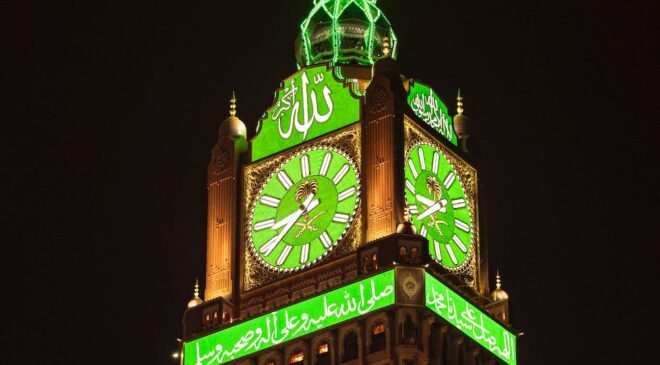 The Abraj Al Bait, also known as the Clock Towers , is a complex of seven skyscraper hotels in Mecca, Saudi Arabia. These towers are a part of the King Abdulaziz Endowment Project that aims to modernize the city in catering to its pilgrims.